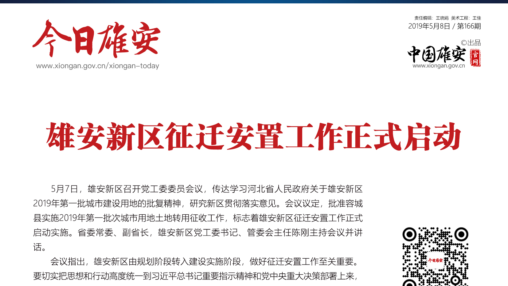 2. 5月7日,雄安新区召开党工委委员会议,传达学习河北省人民政府关于雄安新区2019年第一批城市建设用地的批复精神,研究新区贯彻落实意见。会议议定,批准容城县实施2019年第一批次城市建设用地土地转用征收工作,标志着雄安新区征迁安置工作正式启动实施。就此,雄安新区管委会相关负责人在回答记者提问时表示,新区的征迁安置政策,历经长时间的研究制定过程和严格的审批程序,最大特点在于科学合理、补偿多元、保障长期,充分维护保障了群众的合法权益。新区的补偿安置政策除了土地补偿资金外,还包括土地按时征收奖励、宅基地综合补偿、搬家综合补助及奖励、住房安置等一系列综合收益配套政策。