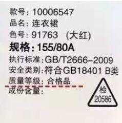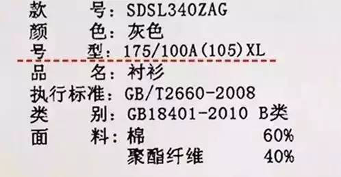 仅用L、M、X等表示衣服的尺码,是不标准的。使用号型标才是合规的,如“175/100A”,“175”是号,表示身高;“100”是型,表示胸围或腰围;“A”是体型,即胸围与腰围尺寸之差,其中A表示正常,B表示偏胖,C表示胖,Y表示偏瘦。