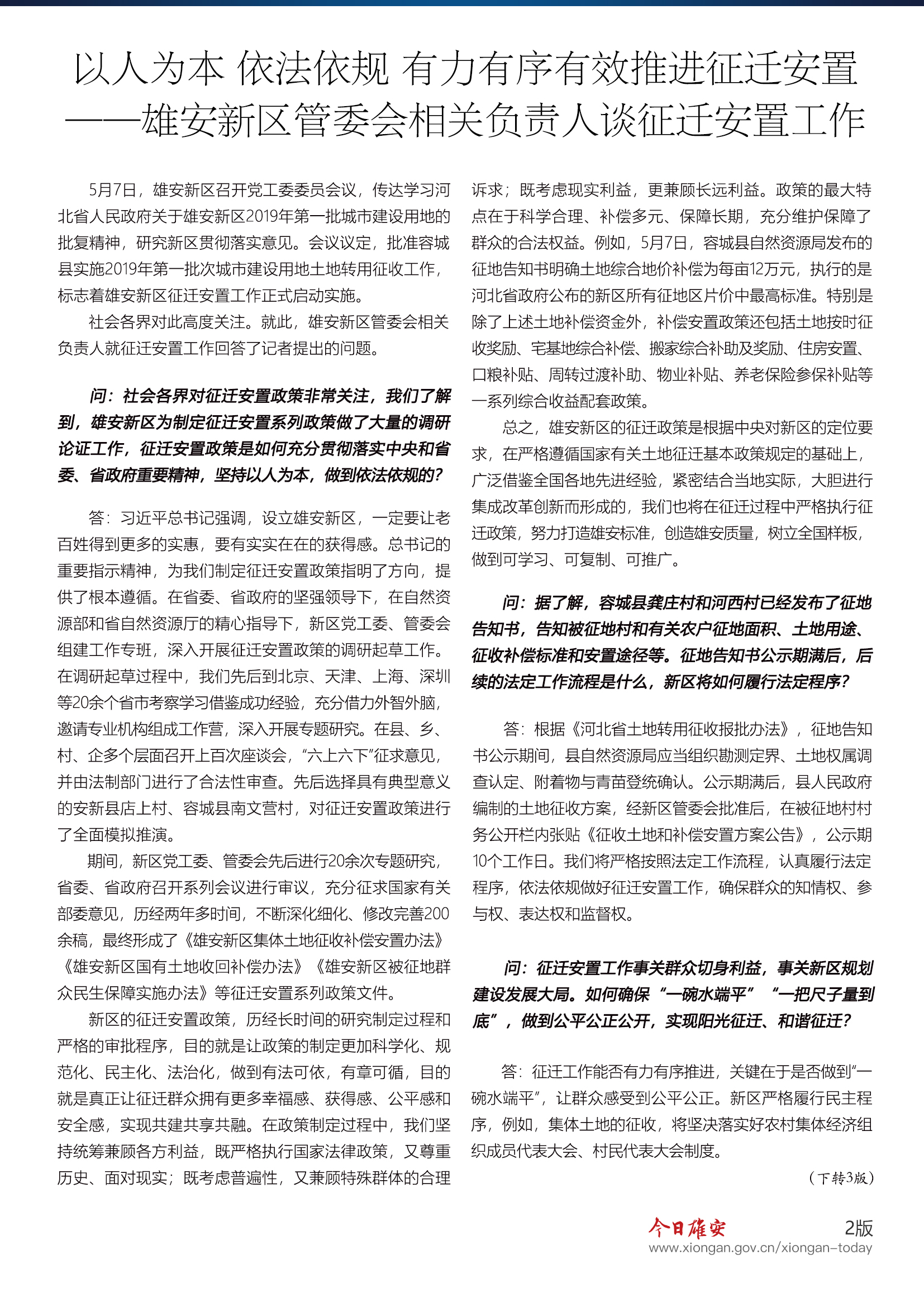 以人为本 依法依规 有力有序有效推进征迁安置——雄安新区管委会相关负责人谈征迁安置工作