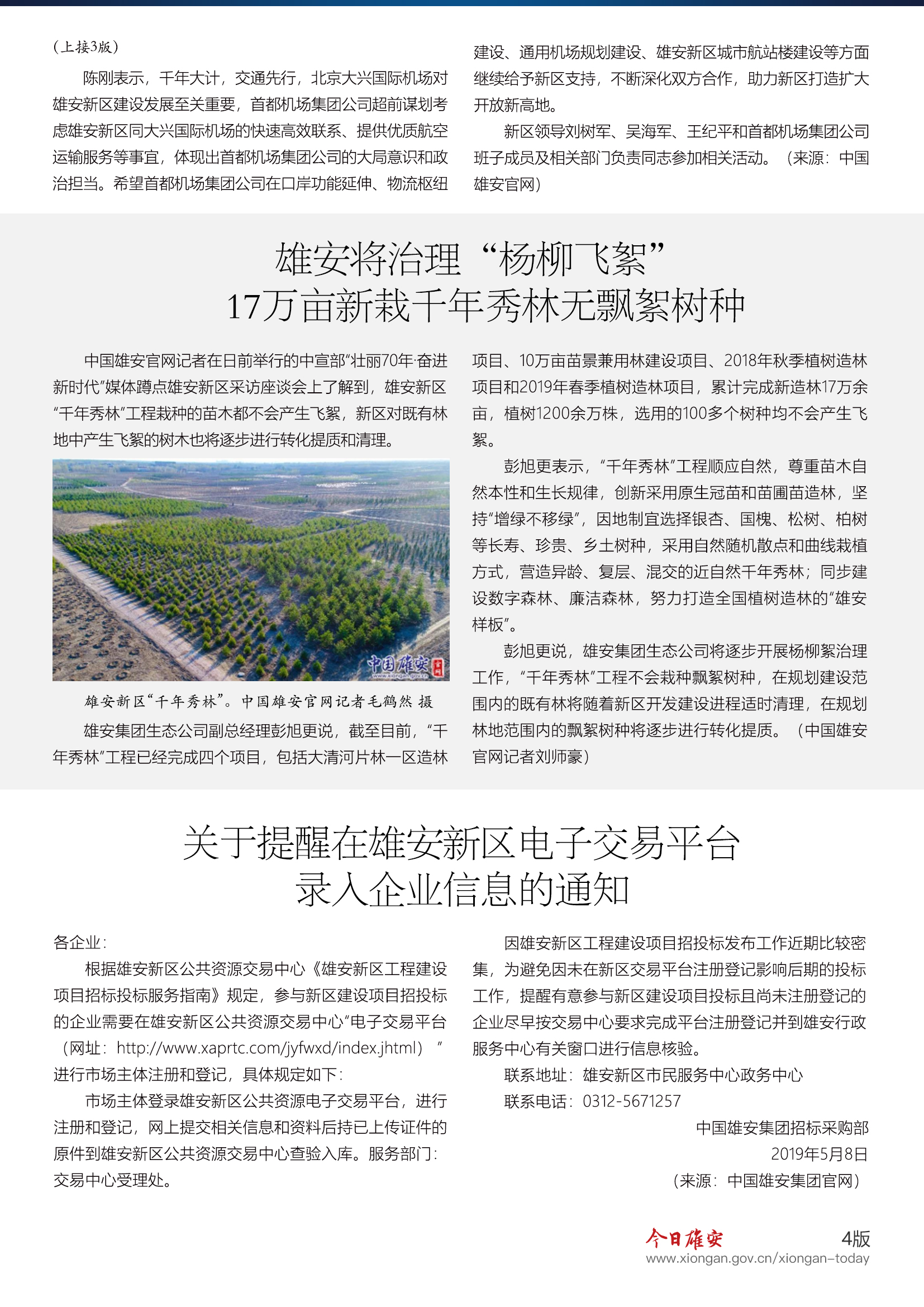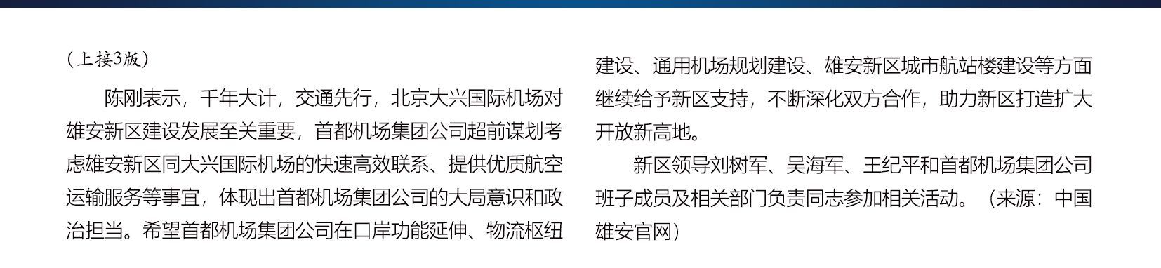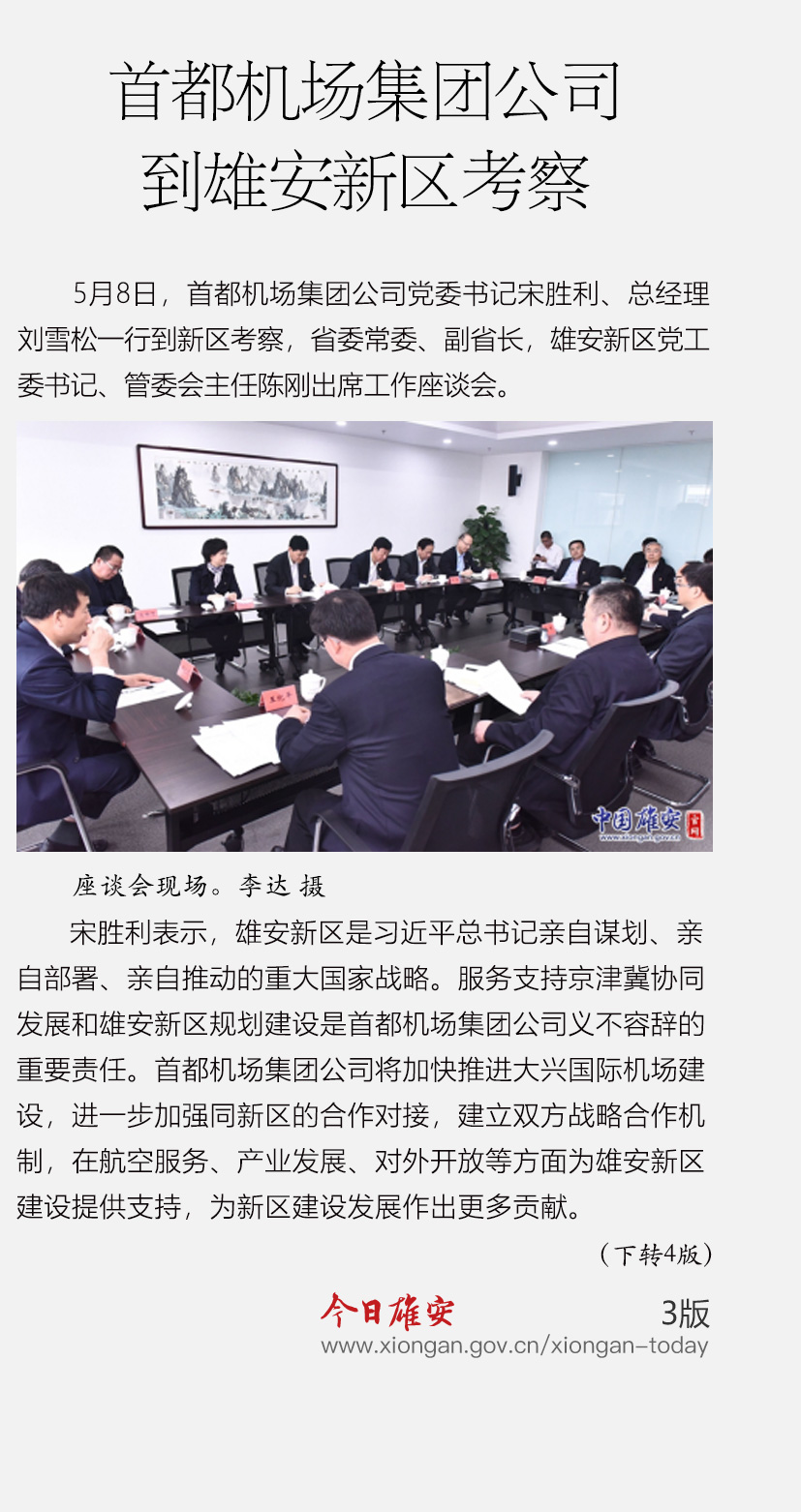 5月8日,首都机场集团公司党委书记宋胜利、总经理刘雪松一行到新区考察。