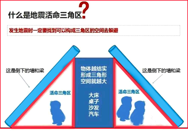 4.避震应选择安全区域。室内选择家具旁、内墙角等易于形成三角空间、有支撑的地区;室外选择空旷、安全的地区。