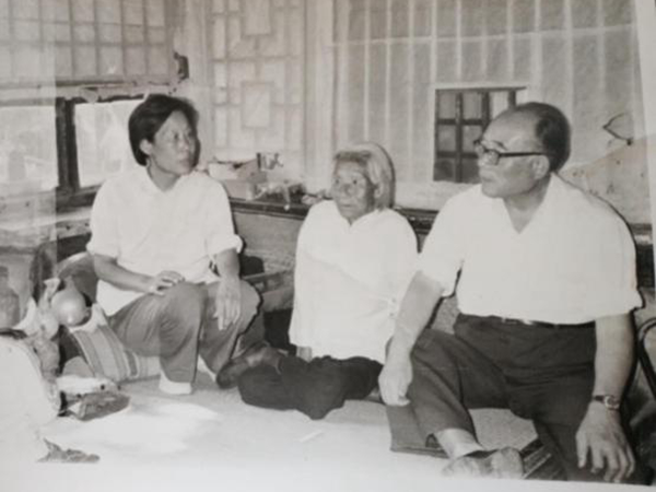 著名作家魏巍(右一)与官大妈母女亲切交谈。资料图