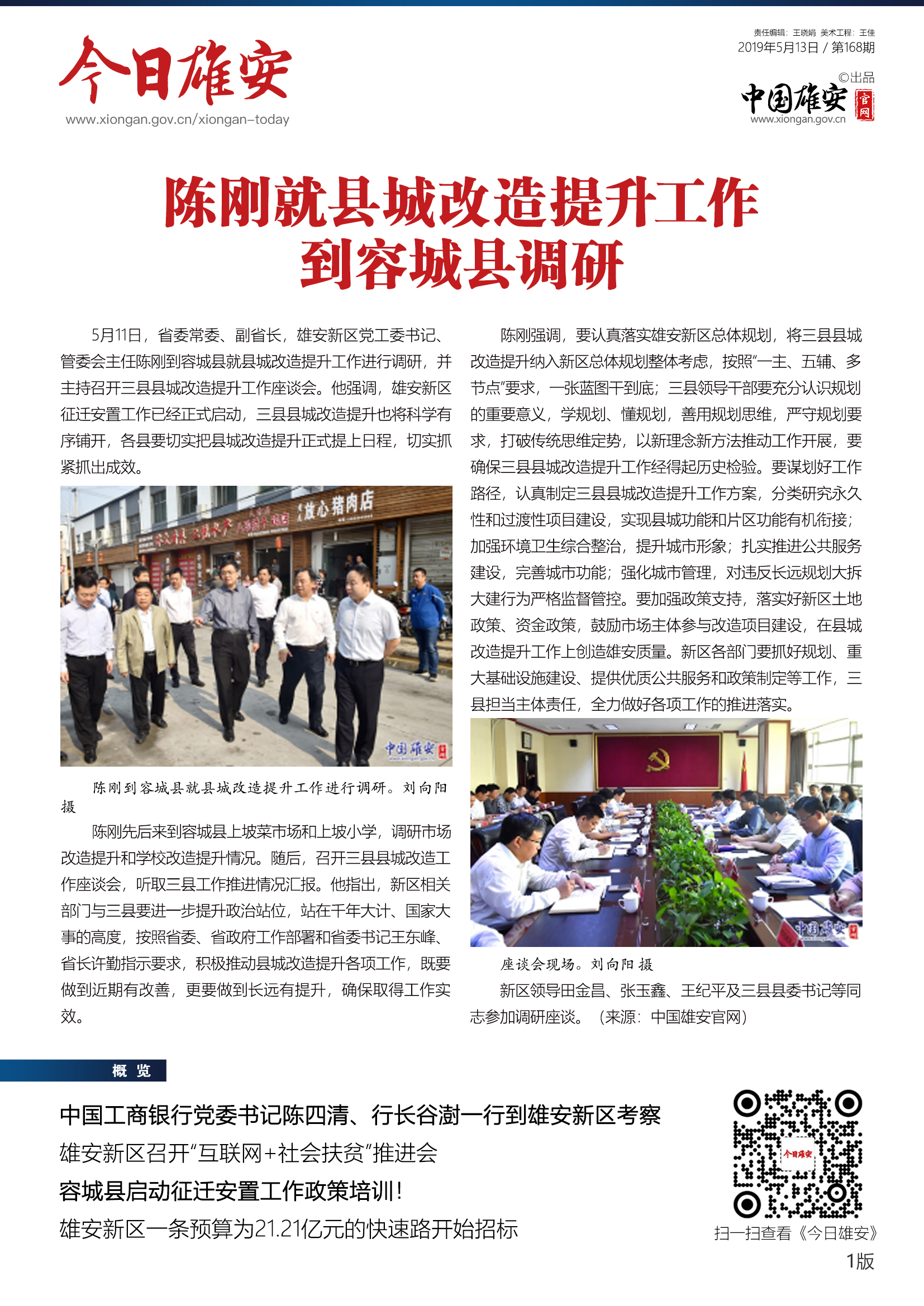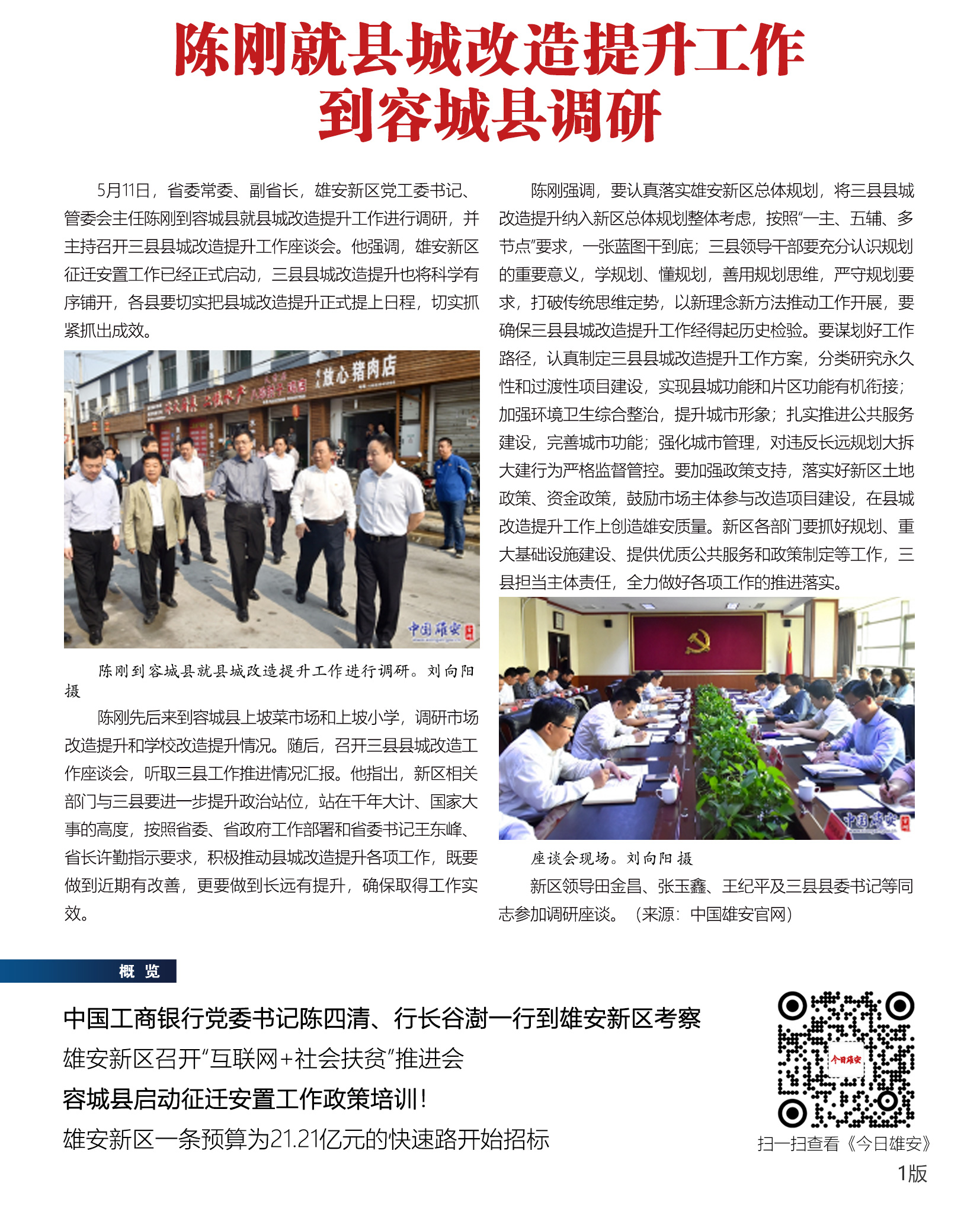 5月11日,陈刚到容城县就县城改造提升工作进行调研,并主持召开三县县城改造提升工作座谈会。