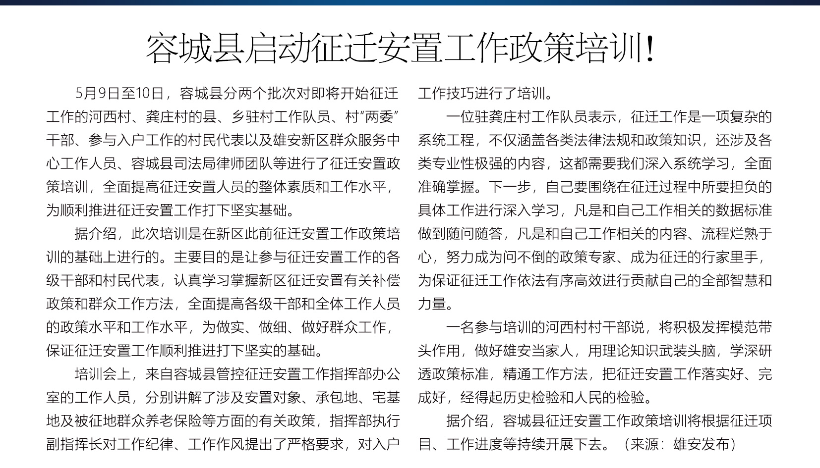容城县启动征迁安置工作政策培训!分两个批次,培训这些人