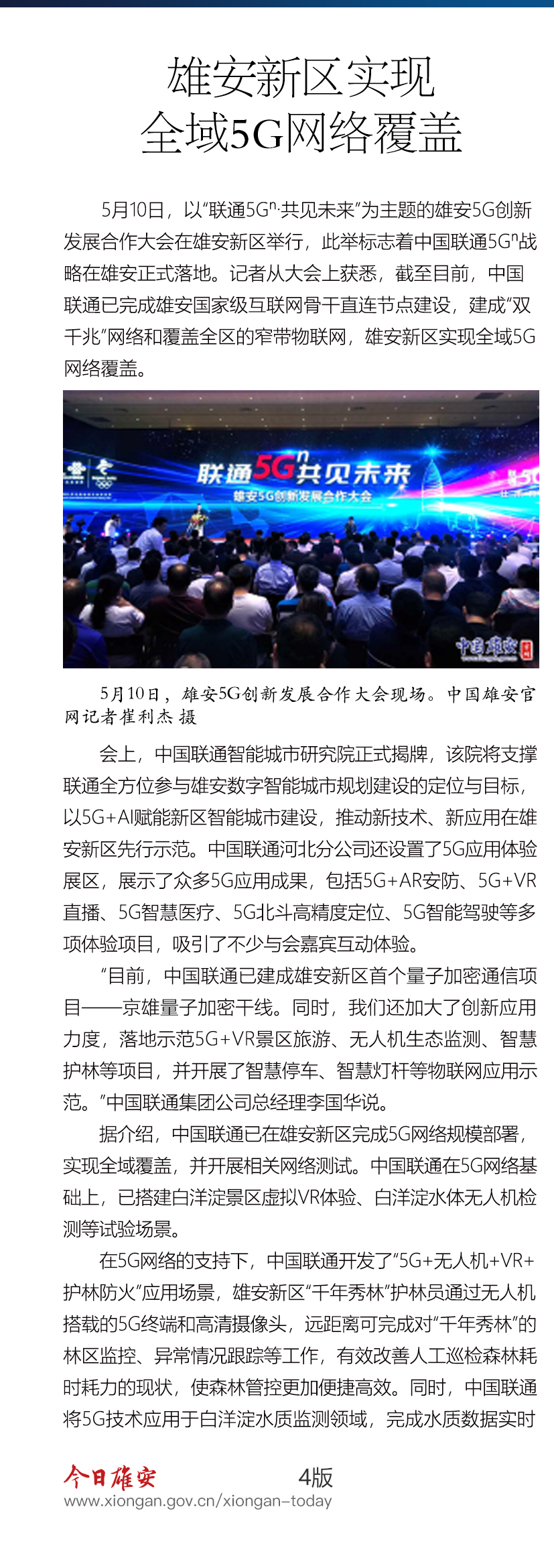 5月10日,以“联通5Gⁿ·共见未来”为主题的雄安5G创新发展合作大会在雄安新区举行,此举标志着中国联通5Gⁿ战略在雄安正式落地。