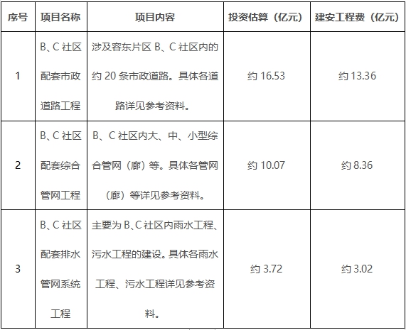雄安容东片区是雄安新区先期启动建设的片区之一,位于容城县城以东、启动区和现状荣乌高速以北、津保铁路以南、张市村以西,规划用地面积约12.7km2。本次实施建设的是容东片区中B、C社区市政道路工程、综合管网工程、排水管网系统工程,工程总投资约30.32亿元,建安工程费约24.74亿元(具体以批复的为准)。
