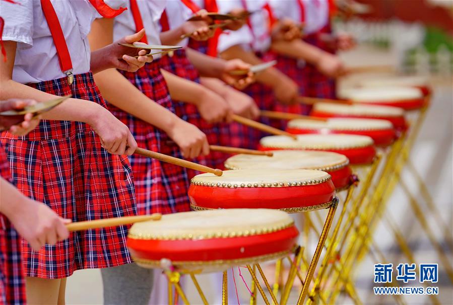 5月14日,滦南县第三实验小学的学生在学习乐亭大鼓。 近年来,河北省滦南县在全县中小学、幼儿园开设评剧、皮影戏和乐亭大鼓等非遗课程,并定期组织专业演艺人员走进学校进行培训指导,培养学生对传统文化的兴趣。新华社记者 杨世尧 摄