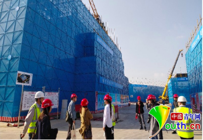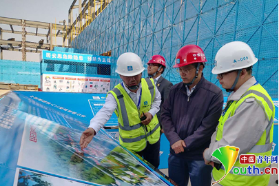 在项目现场,技术人员为国务院国资委新闻中心主任毛一翔讲解施工情况。记者杨月 摄
