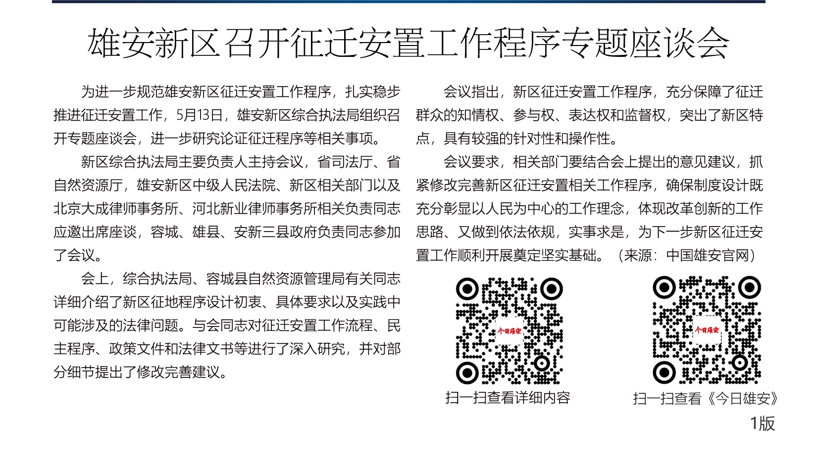 经国务院批准、河北省人民政府审核同意,河北雄安新区容城县人民政府于5月14日发布(2019)第1、2号征收土地和补偿安置方案公告,标志着雄安新区征迁安置工作正式启动。