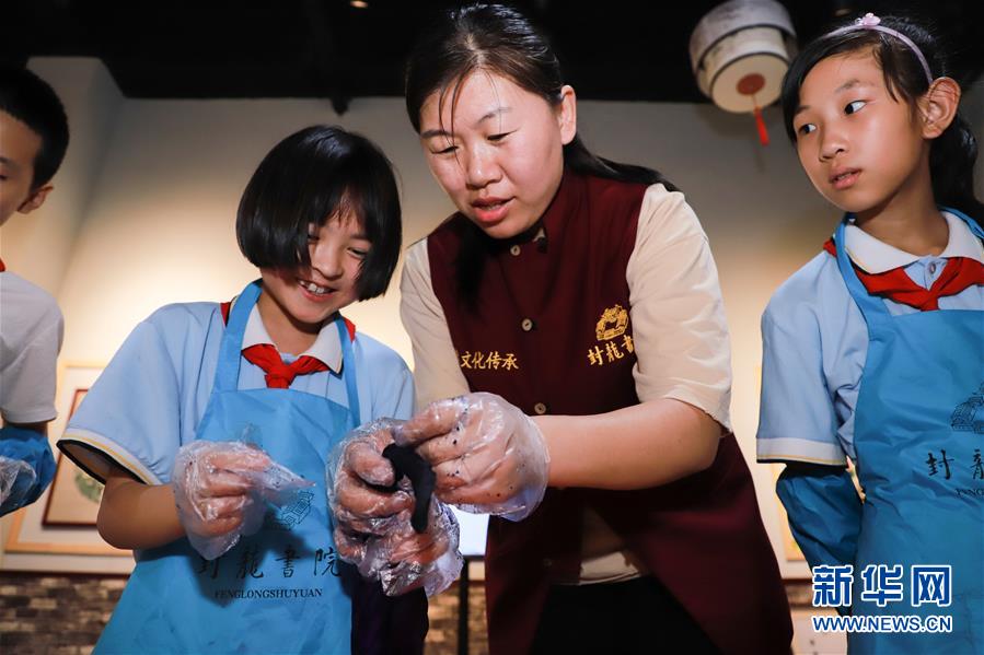 5月17日,在石家庄市桥西区冀台联青年文化创业园,桥西区南马路小学的学生在体验扎染技艺。新华社发(刘沛然 摄)