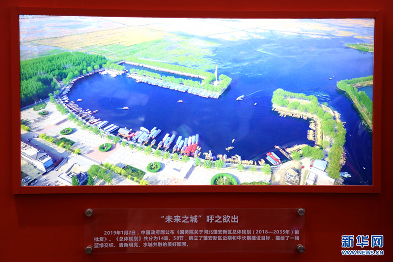 大屏幕上循环播放由中国雄安官网出品的微视频《雄安24小时》《雄安日日新》,展示处处生机勃勃和不断发展变化的雄安新区。