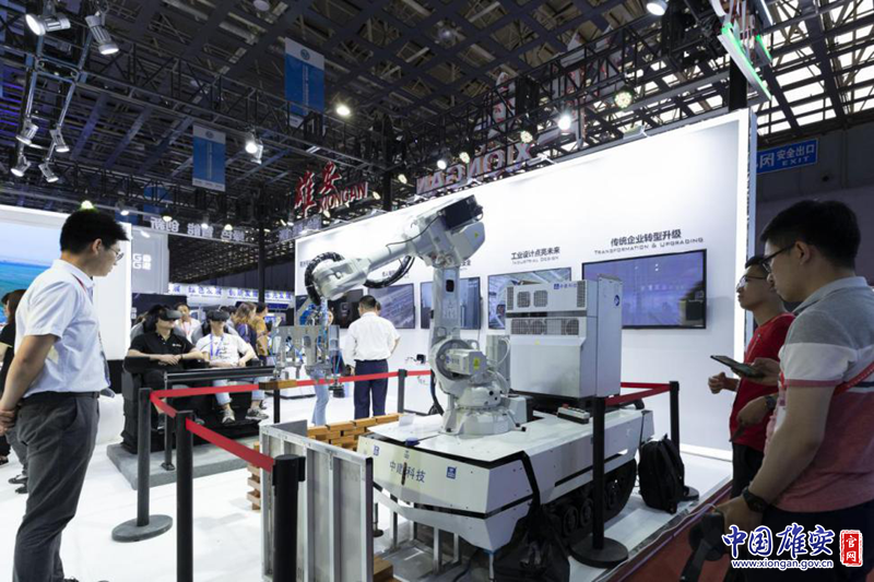装配式智能建造机器人、垂直起降固定翼无人机、智能虹膜锁……在雄安新区高端高新产业展示区,6家驻新区企业通过实物+视频的形式,对各自的新技术、新产品以及在雄安的应用场景分别进行展示,吸引了众多观众驻足观赏。而在特色产品展区,雄安新区传统文化艺术品雄州黑陶、白洋淀芦苇画、“我来雄安了”文创系列产品和容城服装等多种展品,充分展现出雄安新区深厚的文化底蕴以及产业跨界融合迸发的新活力。
