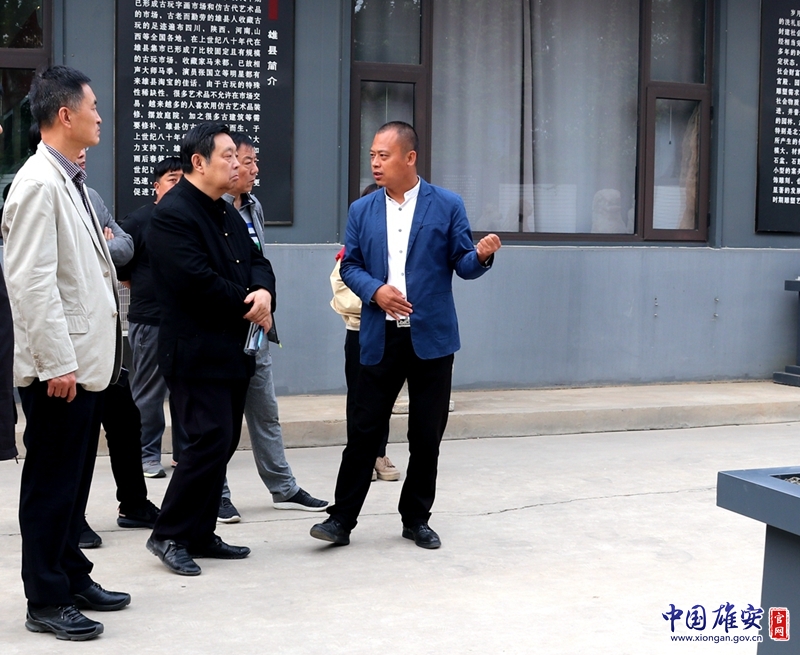 德韵博物馆馆长何德强(右一),是雄安雄县张岗乡高村人,受家庭熏陶,他从小就喜欢古代艺术品。1997年,何德强开始做仿古石雕行业,他制作的每件古代艺术品都蕴含着一段历史,展示了一个时代的兴衰起落。二十多年的收藏路,何德强付出了大量心血,随着藏品的不断增多,何德强萌生了传承弘扬雄安悠久历史文化的想法,2017年,他发起成立了德韵博物馆。目前,博物馆坐落在雄县张岗乡张开路北侧,现在对所有人免费开放,馆内收藏了近千件仿古石雕精品,游客可随时了解雄安优秀历史文化,感受古代艺术之美。