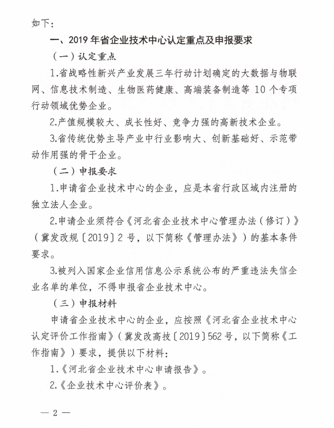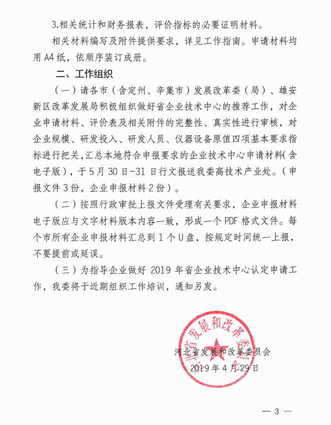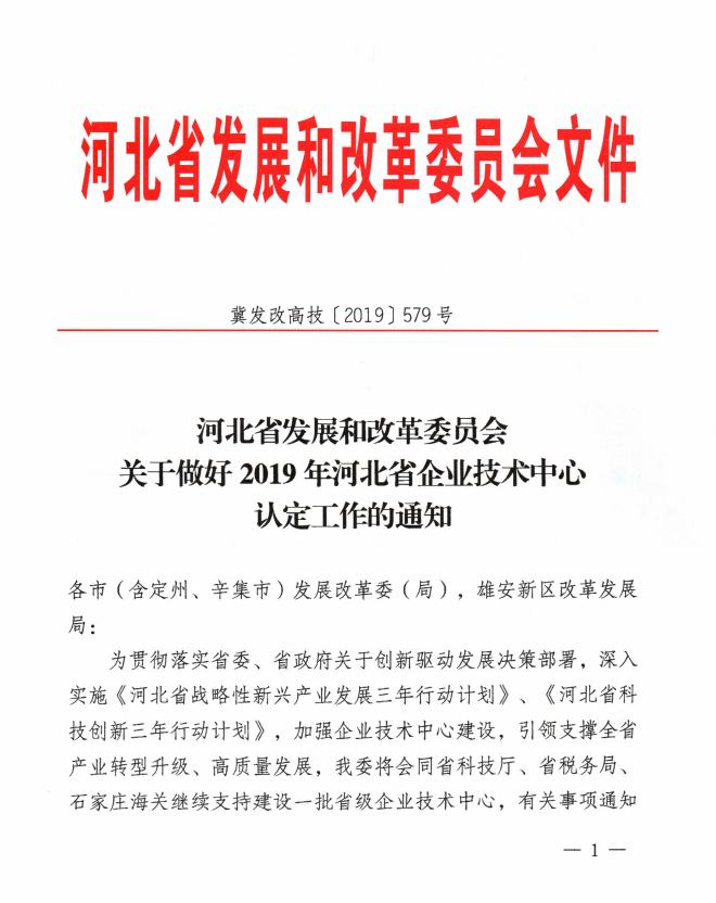 河北省发展和改革委员会关于做好2019年河北省企业技术中心认定工作的通知