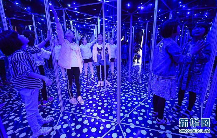5月20日,在河北省武强周窝音乐体验中心,武强县周窝小学的孩子们在体验镜面迷宫。当日,武强县周窝小学的孩子们走进武强周窝音乐体验中心,零距离体验声光电带来的科技魅力。5月19日至26日是2019年全国科技活动周。活动期间,河北省武强县开展了“音画情、科普行”科普宣传活动。新华社记者 李晓果 摄
