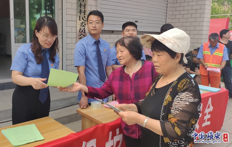 中国雄安官网5月22日电 为进一步提高新区群众防范非法集资能力,培养新区群众理性投资意识,贯彻落实上级单位指导意见,确保新区拆迁工作平稳过渡,5月22日,雄安新区中级人民法院与省检察院雄安新区分院会同容城县人民法院、容城县人民检察院、中国农业银行容城分行等多部门联手开展为期两天的“携手筑网,共防共治,远离非法集资”主题活动,首站在龚庄村正式开展。