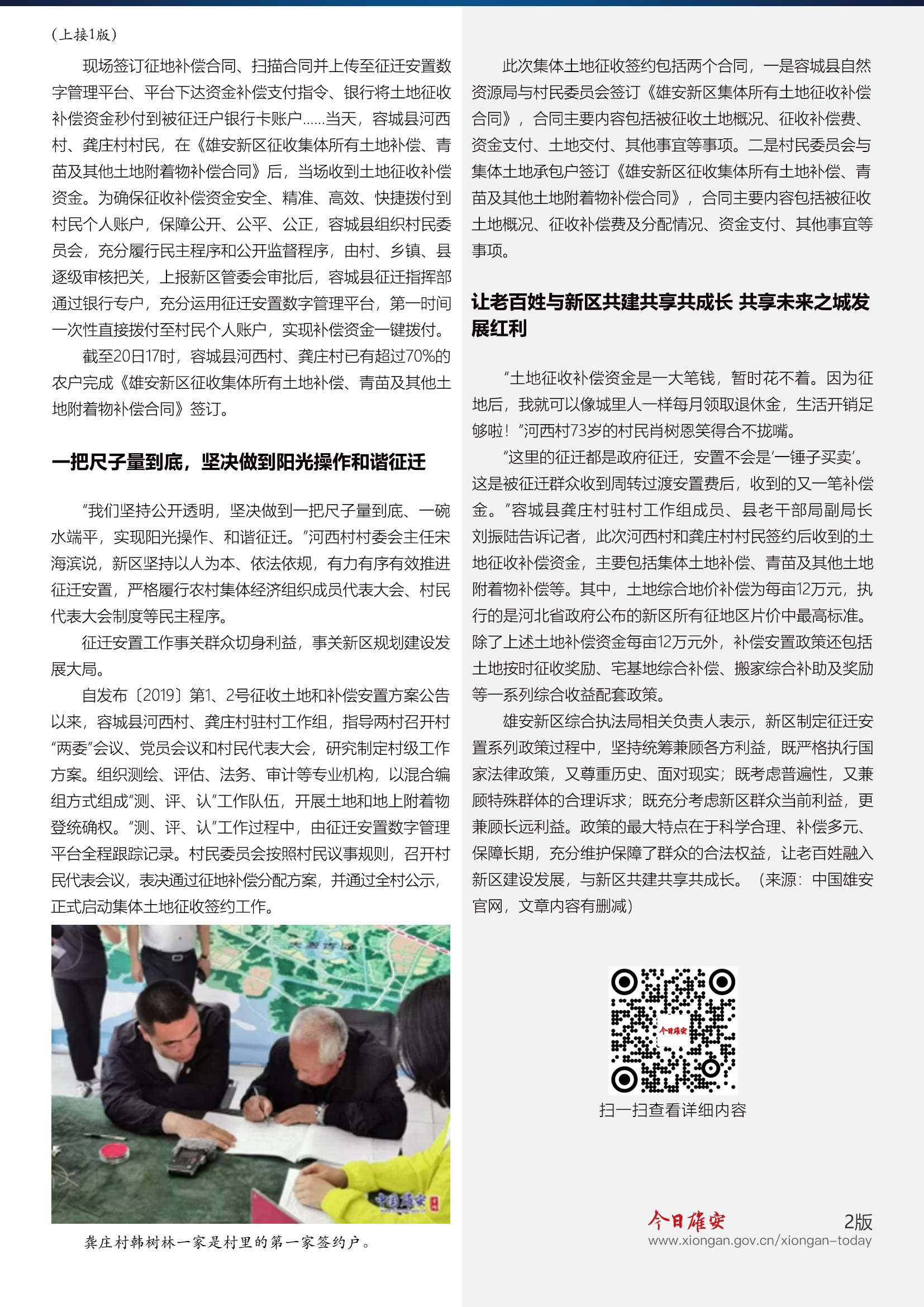 5月20日,容城县启动河西村、龚庄村集体土地征收签约工作。