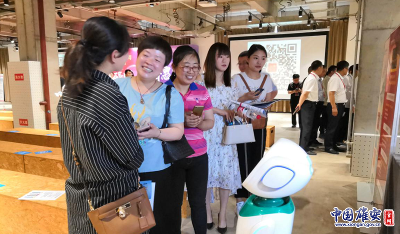 参观者与机器人互动。中国雄安官网记者朱伟琳 摄
