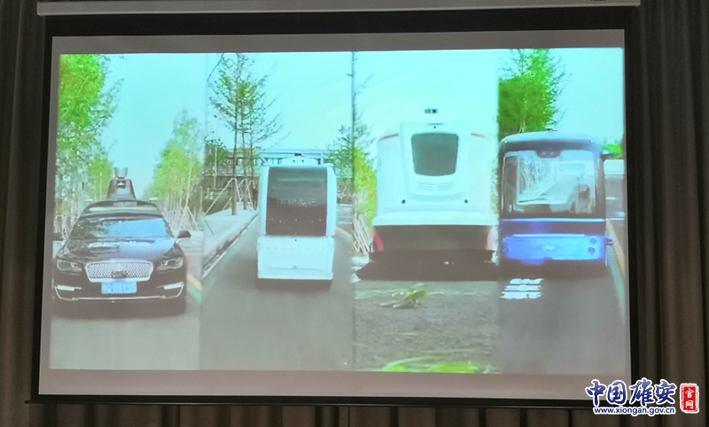 容城县科技活动周启动仪式现场播放宣传片展示雄安市民服务中心无人车。中国雄安官网记者朱伟琳 摄