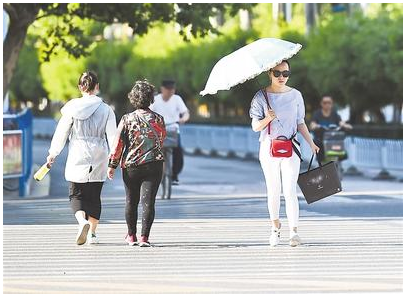 5月22日,石家庄市市民在烈日下出行。记者史晟全 摄