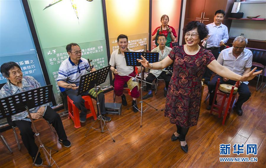 5月23日,河北省衡水市桃城区中华大街街道育新社区老人在日间照料中心排练京剧。 近年来,河北省衡水市桃城区以社区建设为依托,积极整合辖区资源,根据老年人精神文化生活需求逐步完善社区养老服务设施,并通过定期开展丰富多彩的社区活动,让社区老人乐享幸福生活。新华社记者李晓果摄
