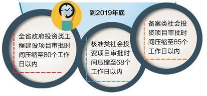 方案明确,到2019年底,全省政府投资类工程建设项目审批时间压缩至80个工作日以内,核准类社会投资项目审批时间压缩至68个工作日以内,备案类社会投资项目审批时间压缩至65个工作日以内。审批制度框架和信息数据平台进一步完善,2019年上半年,省、市(含定州、辛集市)初步建成工程建设项目审批信息数据平台。到2019年底,省、市全面建成与相关系统平台互联互通的工程建设项目在线审批监管平台和审批管理系统。