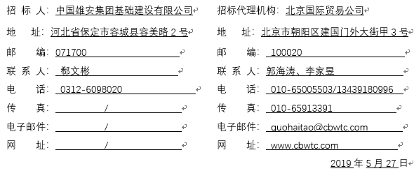 4.1 凡有意参加投标者,请于2019年5月28日至2019年6月3日,每日上午9:00时至11:30时,下午13:00时至16:00时(北京时间,下同),在北京市朝阳区建国门外大街甲3号北京国际贸易公司409室购买招标文件,现场需提供①加盖单位公章的单位介绍信或法人授权委托书②经办人身份证原件及加盖公章复印件③资质证书复印件(可不盖单位章)④“雄安新区公共资源交易服务平台”中投标人已完成本项目投标确认的网页截图复印件(可不盖单位章,投标确认操作可咨询平台咨询电话0312-5671238)。