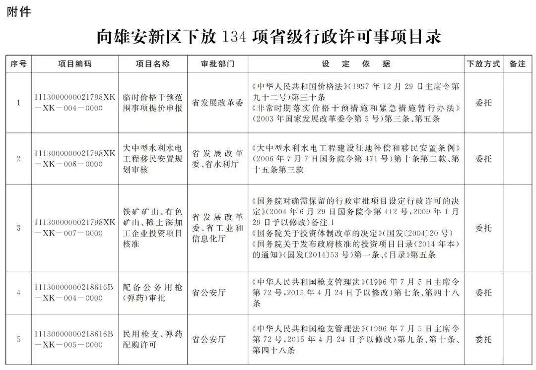 为进一步支持雄安新区规划建设,充分赋予雄安新区省级经济社会管理权限,经研究,河北省政府决定向雄安新区下放134项省级行政许可事项。现将有关事宜通知如下: