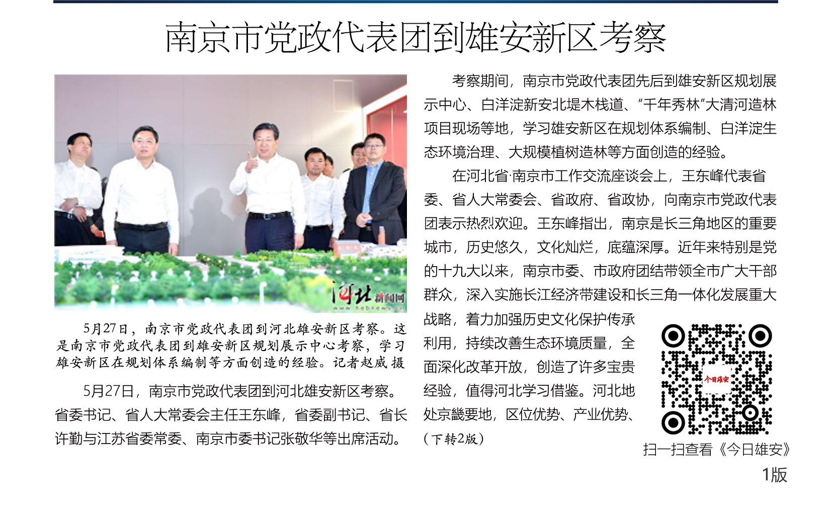 5月27日,南京市党政代表团到河北雄安新区考察。