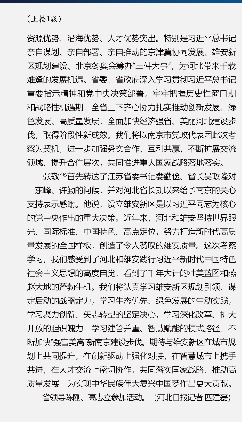 南京市党政代表团到雄安新区考察