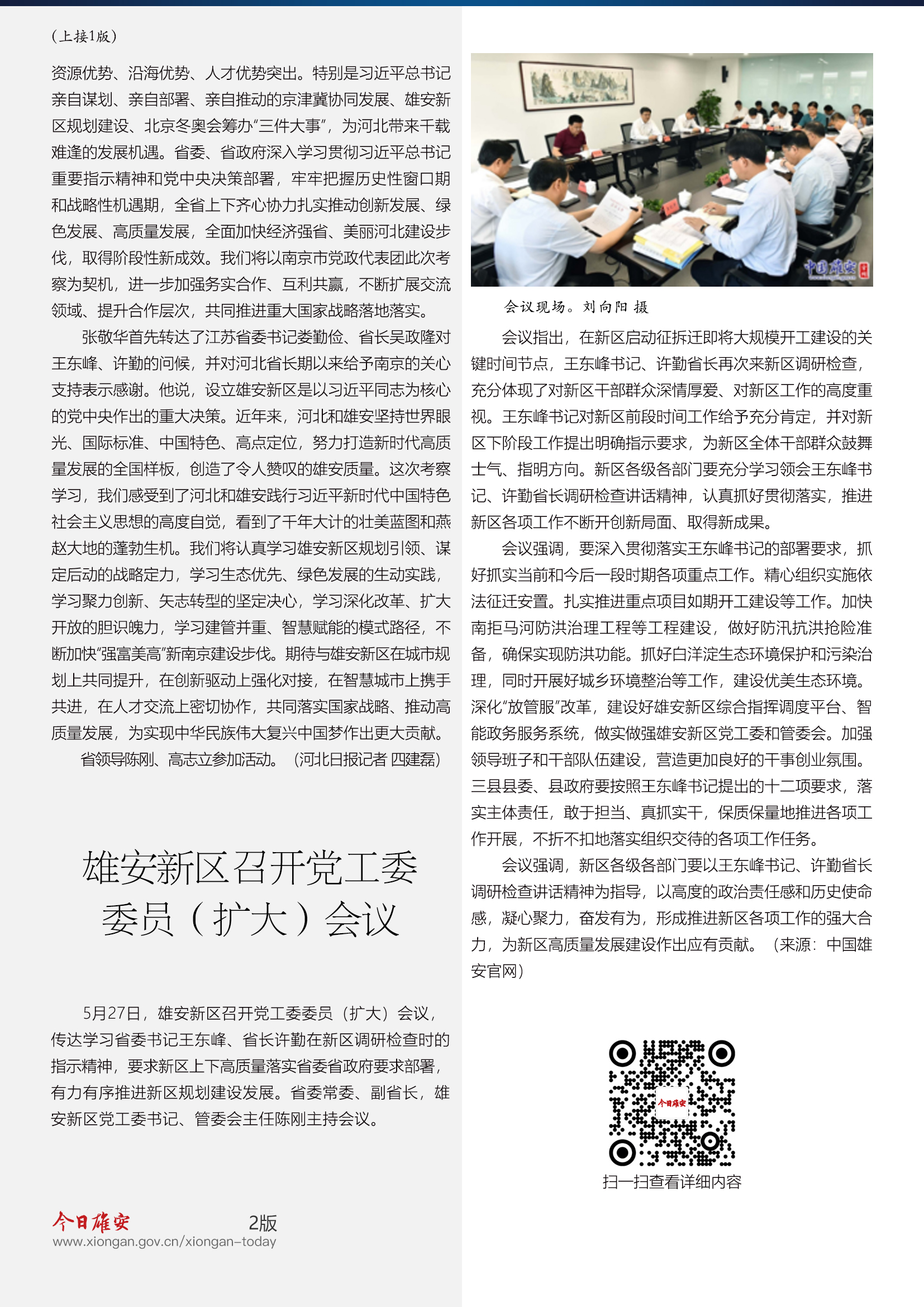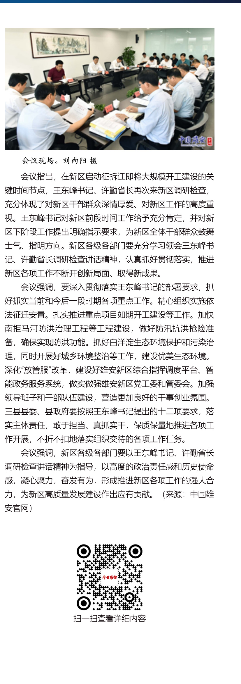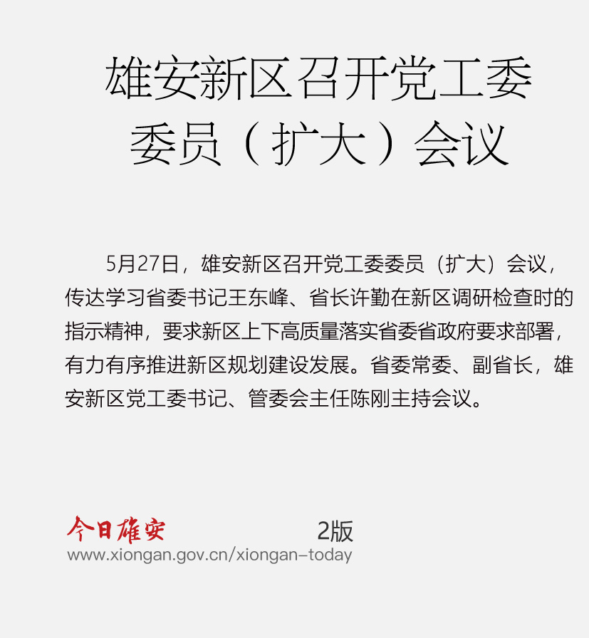 5月27日,雄安新区召开党工委委员(扩大)会议,传达学习省委书记王东峰、省长许勤在新区调研检查时的指示精神,要求新区上下高质量落实省委省政府要求部署,有力有序推进新区规划建设发展。