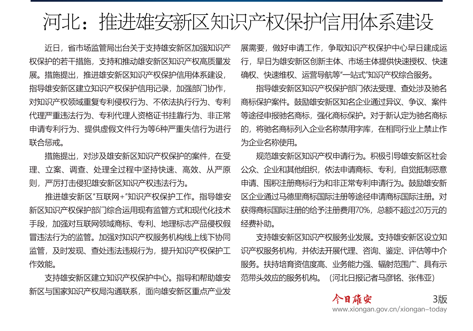河北:推进雄安新区知识产权保护信用体系建设