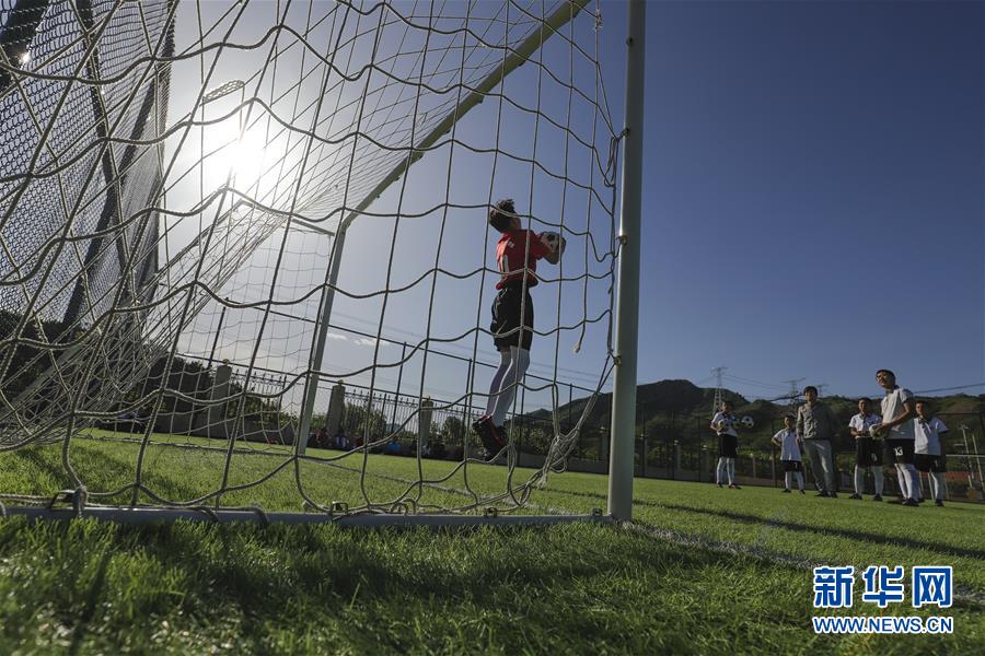5月27日,校园足球队的队员在进行守门员扑救球训练。“六一”国际儿童节临近,河北唐山遵化市洪山口九年一贯制学校组织校园足球队抓紧进行足球基础技能和体能训练,为儿童节足球对抗赛表演做准备。该校足球队由二十名学生组成,足球队的对抗赛表演是该校节庆活动中的“传统节目”。新华社发(刘满仓 摄)