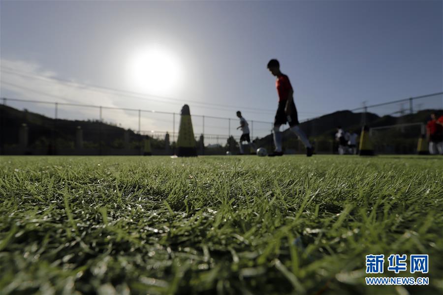 5月27日,校园足球队的队员在进行带球过障碍训练。新华社发(刘满仓 摄)