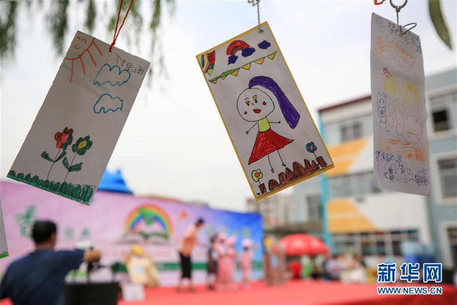 5月30日,河北省唐山市迁西县第一幼儿园举办自制书签展览和趣味表演活动迎接“六一”。新华社发(王爱军 摄)
