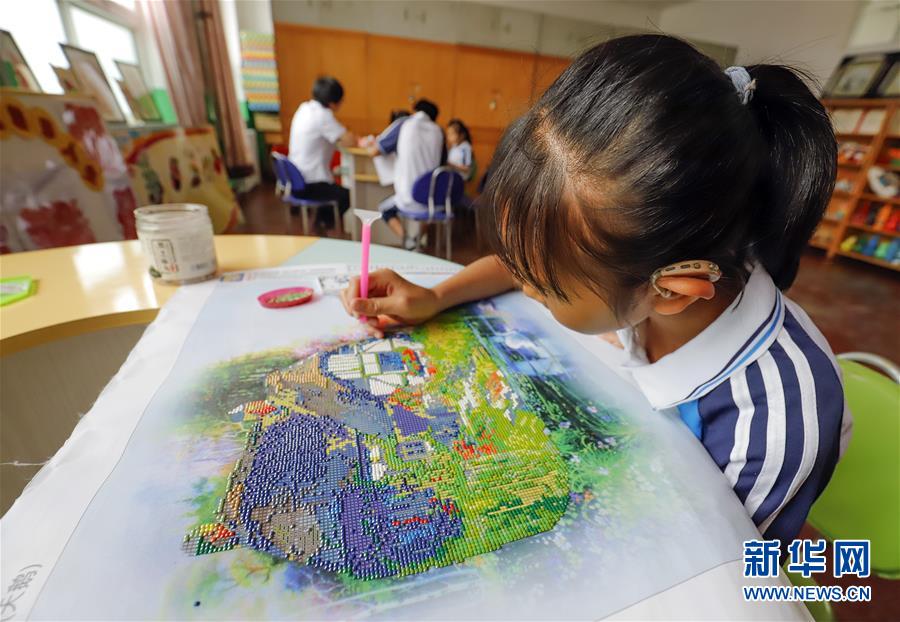 5月30,河北唐山遵化市特教学校的学生在制作手工画,为 “六一”国际儿童节的展出做准备。新华社发(刘满仓 摄)