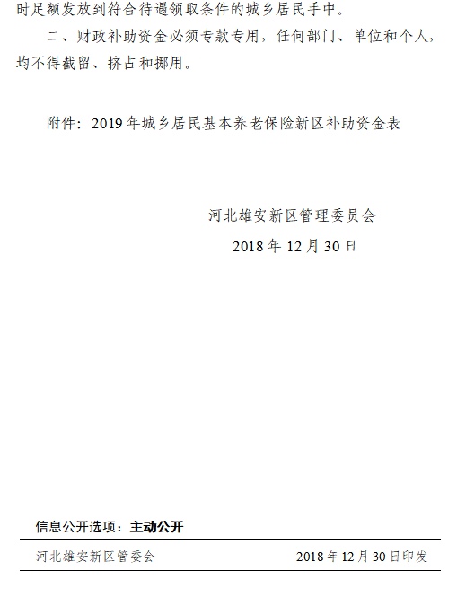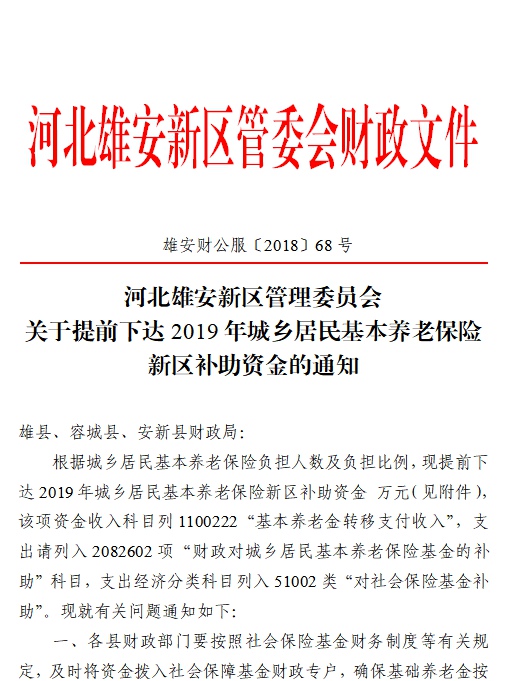 现将雄安新区提前下达2019年城乡居民基本养老保险新区补助资金分配结果予以公告,如有异议,请向以下部门提出意见。