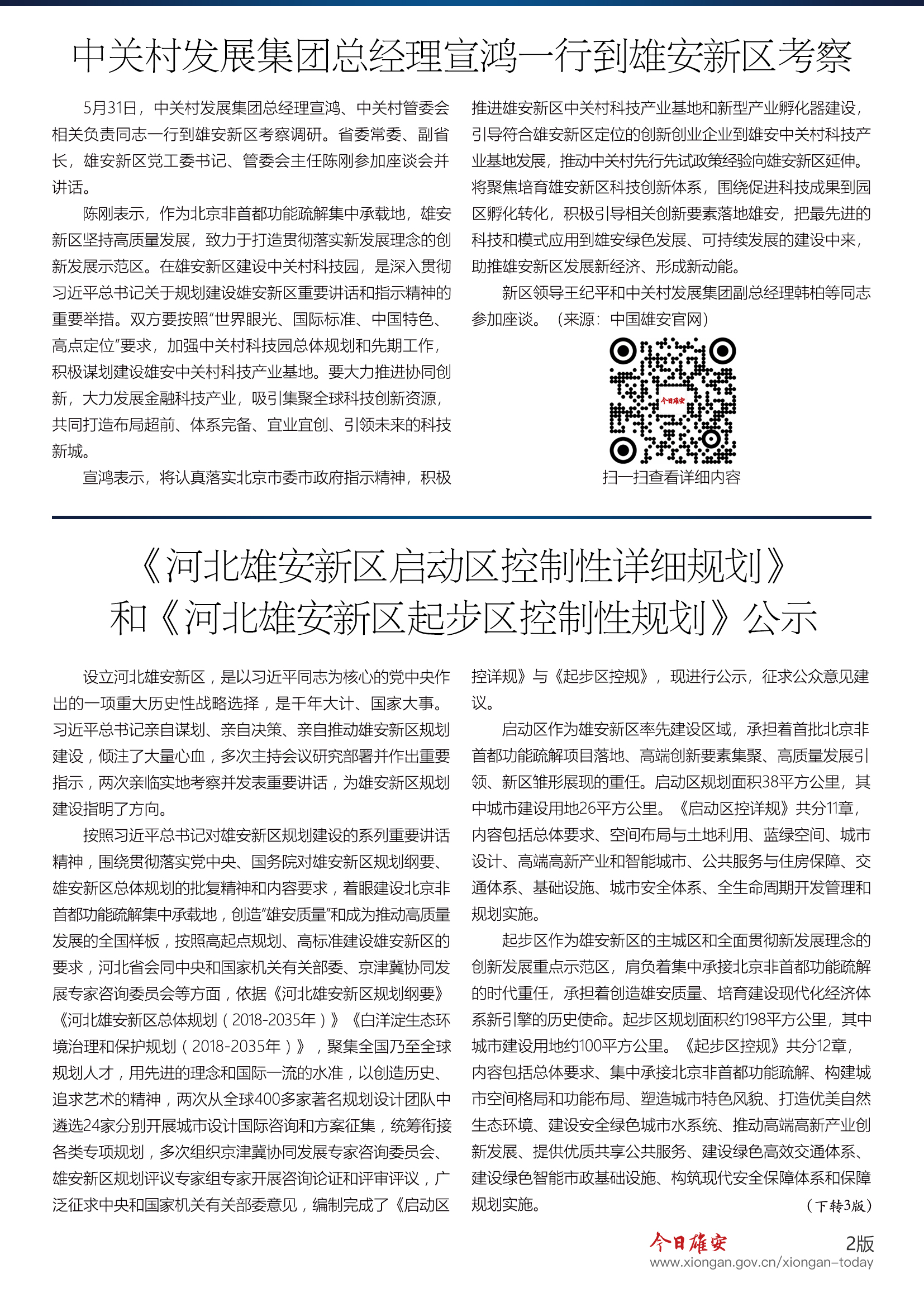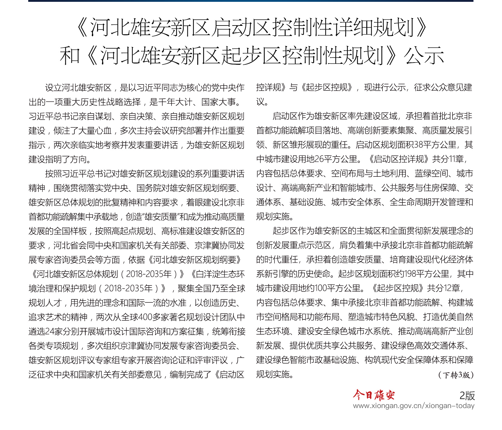 《河北雄安新区启动区控制性详细规划》和《河北雄安新区起步区控制性规划》公示
