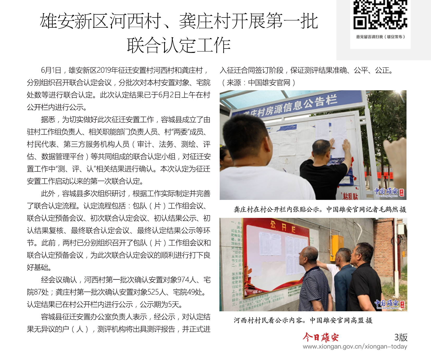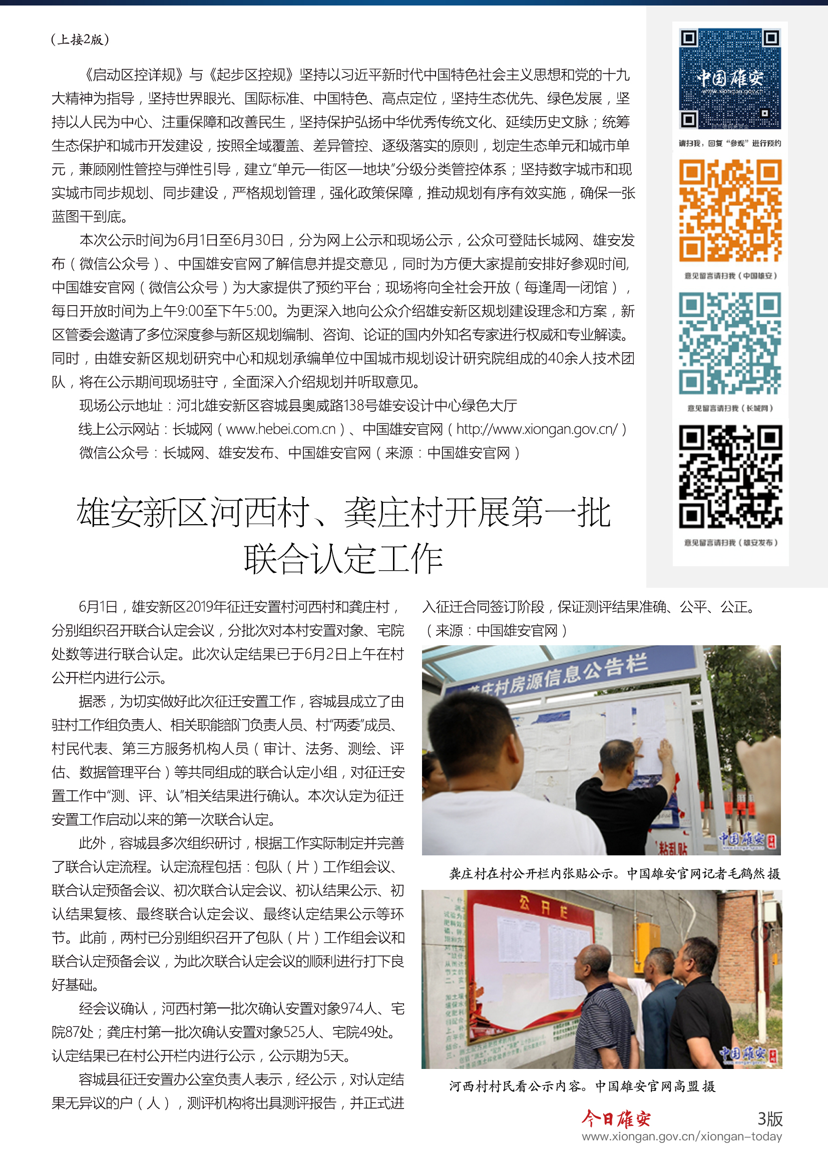 6月1日,雄安新区2019年征迁安置村河西村和龚庄村,分别组织召开联合认定会议,分批次对本村安置对象、宅院处数等进行联合认定。
