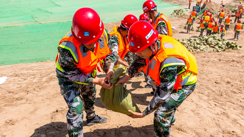 6月3日,雄安集团在南拒马河防洪治理工程指挥现场举办“安全生产月”启动仪式暨生态建设公司防汛应急演练活动。中国雄安官网记者马梦迪 摄