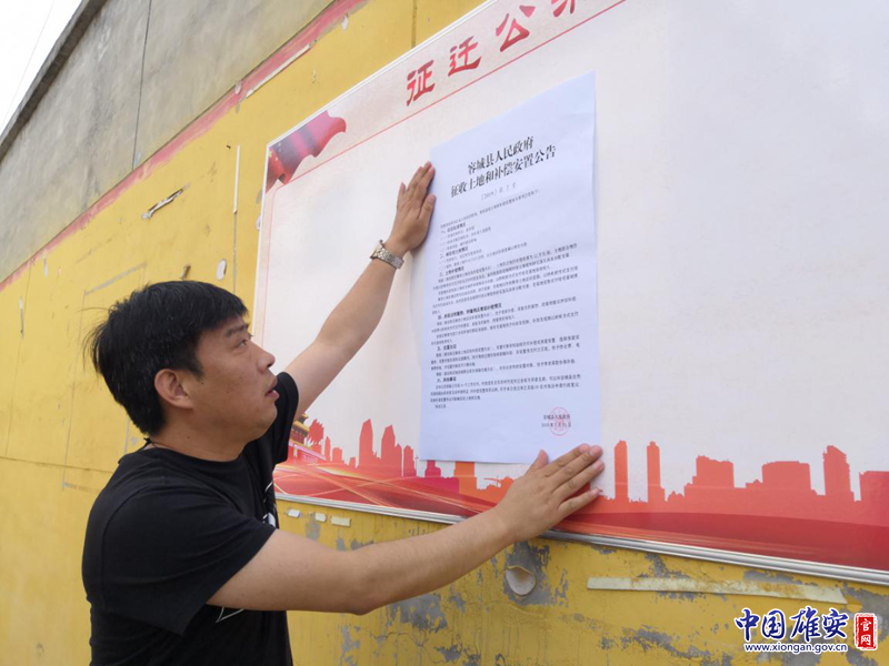 征迁安置工作坚持“一碗水端平”“一把尺子量到底”。图为驻村干部在马庄村张贴公告。中国雄安官网记者朱伟琳 摄