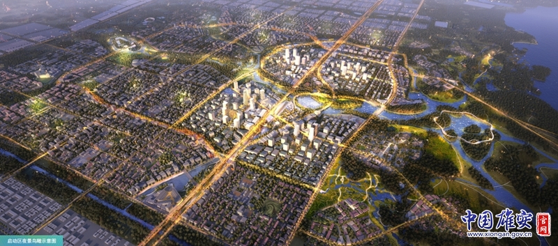 启动区夜景鸟瞰示意图。雄安新区规划建设局供图