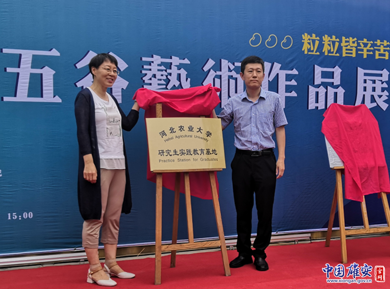展览现场,与会嘉宾为“河北农业大学研究生实践教育基地”揭牌。中国雄安官网记者朱伟琳 摄