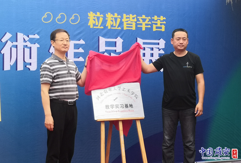 展览现场,与会嘉宾为“河北农业大学艺术学院教学实习基地”揭牌。中国雄安官网记者朱伟琳 摄