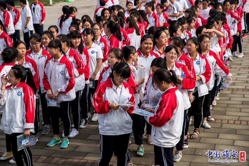 “来,看看你都‘配齐’了没?”在雄安新区高考考点,考生在高考前互相检查考试用品。中国雄安官网记者马梦迪 摄