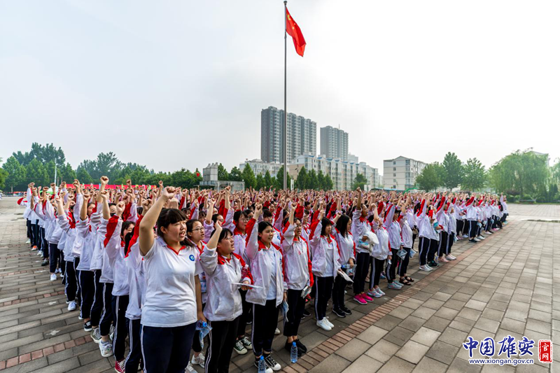 “高三有我,必创辉煌!”雄安新区白洋淀高级中学高考生考前集体宣誓,迎接高考第一天。中国雄安官网记者马梦迪 摄