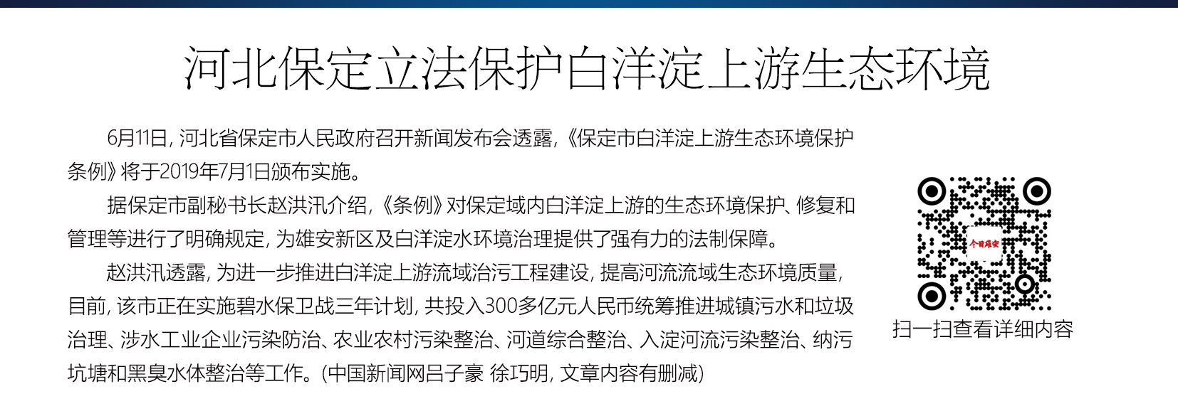 备受关注的雄安新区,现已由顶层设计转入实质性建设阶段。白洋淀综合治理和保护,是下一步雄安新区工作的着力点之一。