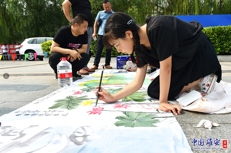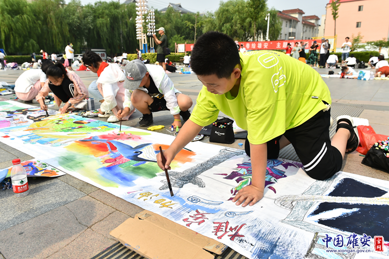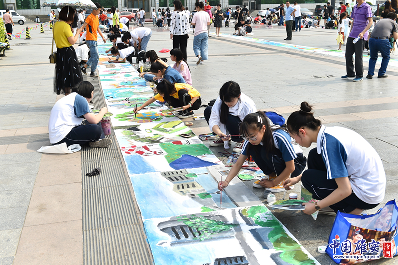 6月12日上午,“百米长卷绘雄安”主题绘画活动在安新县白洋淀文化广场举办。本次活动是安新县第十六届全县中小学生艺术节活动的一部分,安新县各中小学及幼儿园的230余名学生代表参加了绘画活动,活动展出的绘画作品包含幼儿、小学、初中、高中四个长卷,总长度达210米。学生们在上面画出了自己心中最美的雄安,场面十分壮观,得到了社会各界的广泛关注和参与。