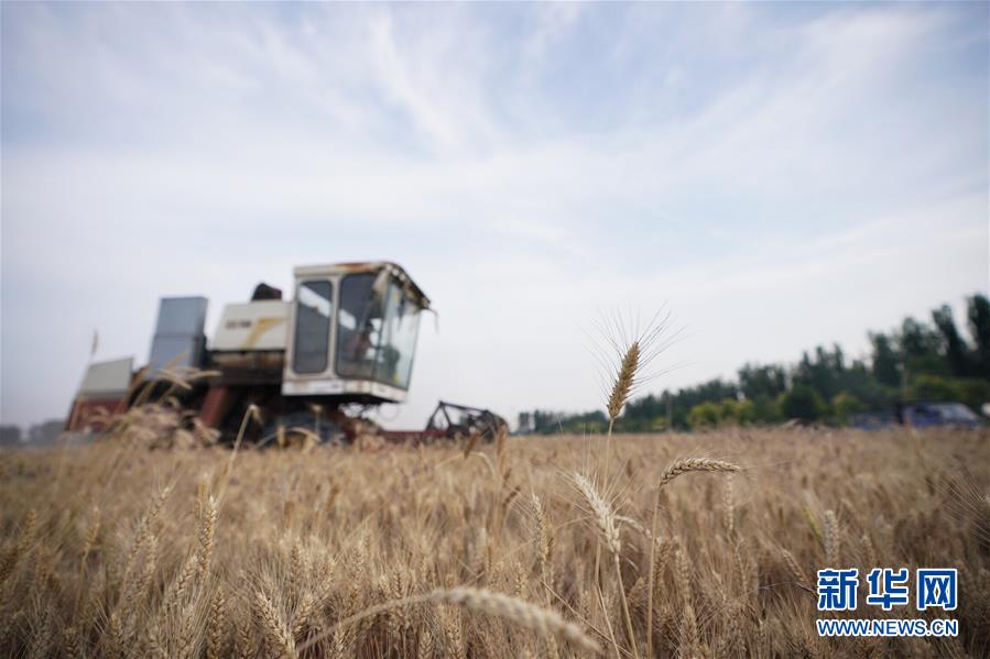 6月13日,雄安新区大王镇小王村村民在收获小麦。近日,雄安新区小麦陆续成熟,当地村民抢抓农时进行收获。新华社记者 邢广利 摄