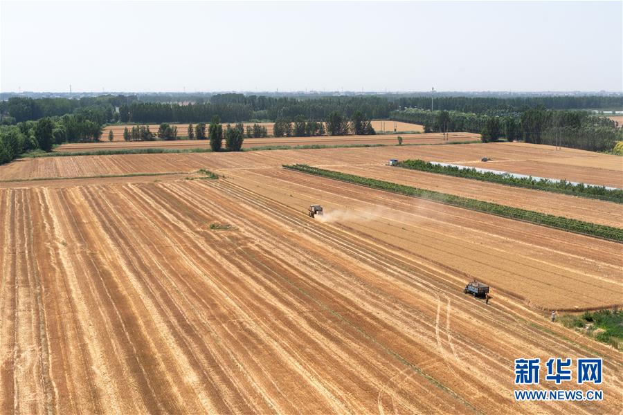 雄安新区安新县农民在收割小麦(6月14日摄)。 新华社记者 张笑宇 摄